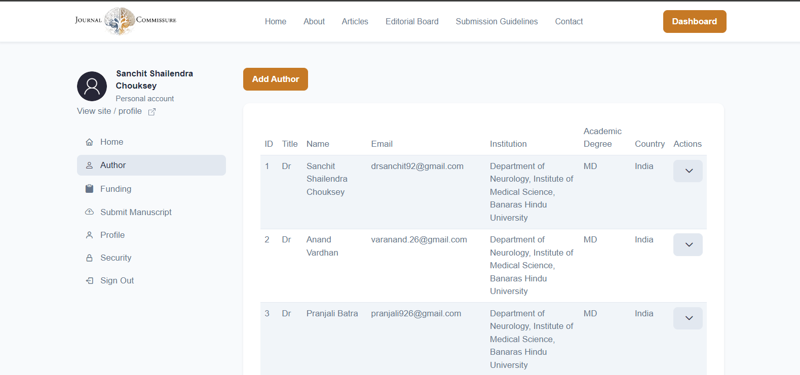 - Corresponding author: Indicate in detail of correspondence about your article during the entire publishing and refereeing process, as well as after it has been published. This duty entails responding to any follow-up inquiries regarding your data, methods, materials, and outcomes. It is crucial that you maintain your corresponding author's email address and contact information current throughout the submission and publication processes.
